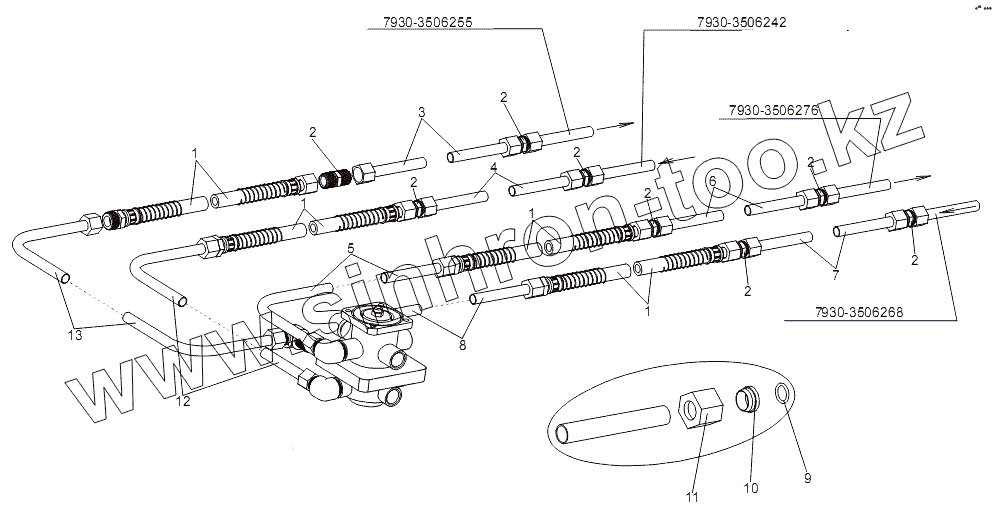 Каталог запасных частей к технике: МЗКТ-7930-200. Трубопроводы к тормозному крану