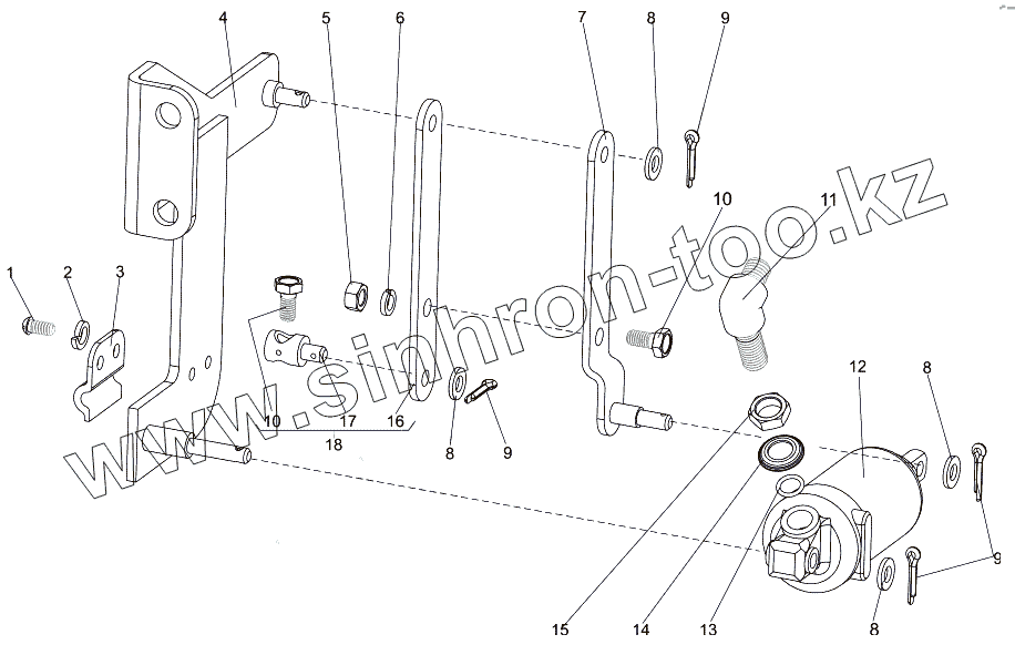 Каталог запасных частей к технике: МЗКТ-7930-200. Цилиндр с кронштейном