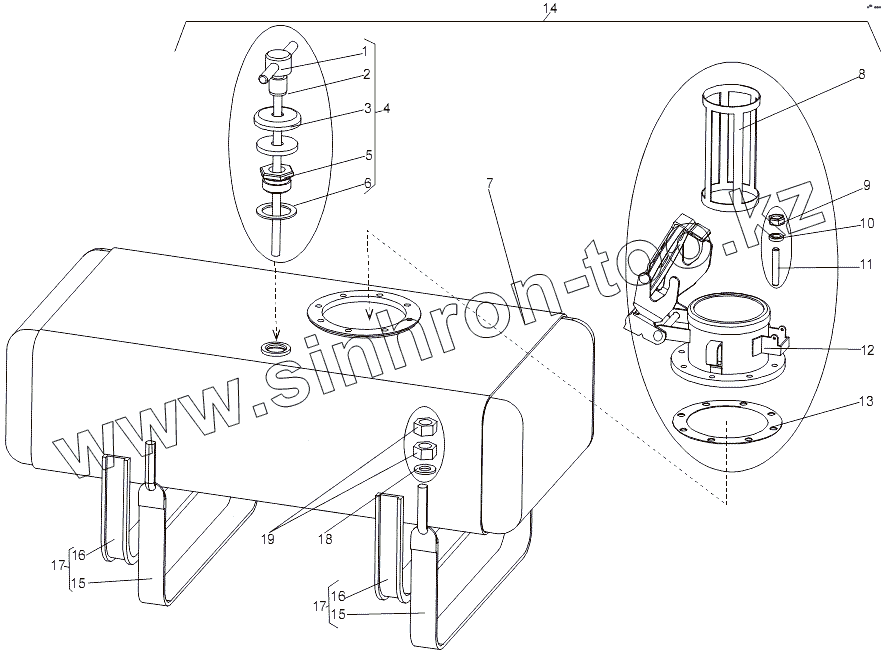 Каталог запасных частей к технике: МЗКТ-7930-200. Установка бака пускового топлива
