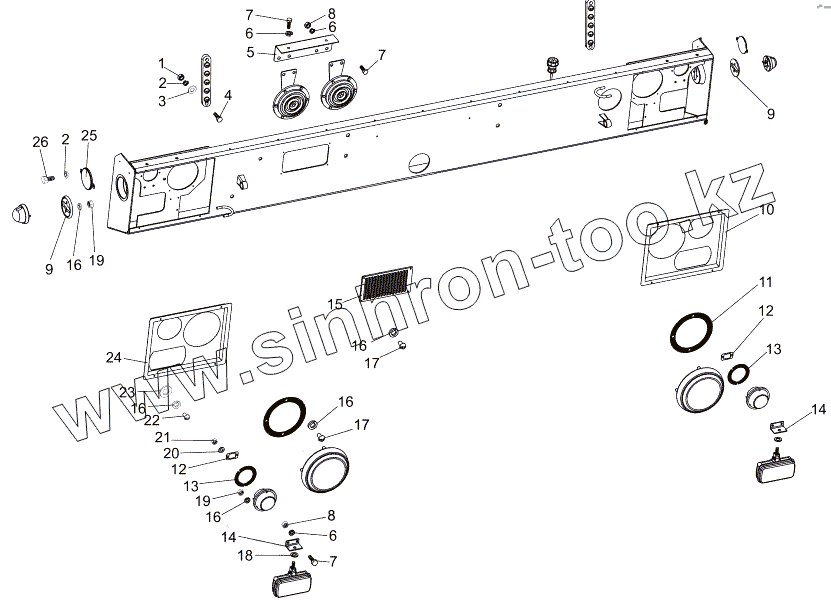 Каталог запасных частей к технике: МЗКТ-7930-200. Установка фар и фонарей передних