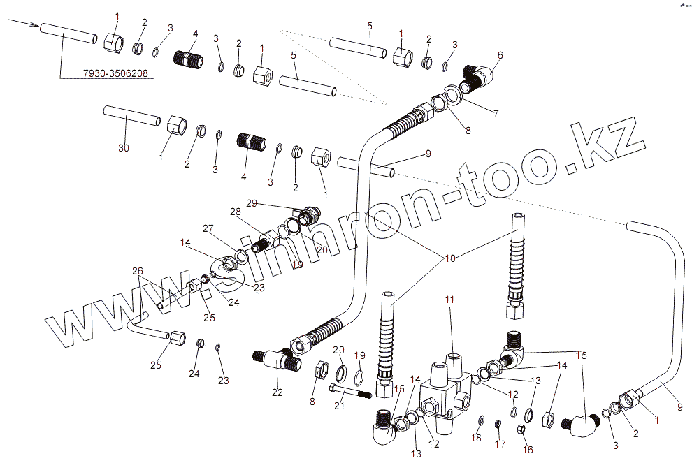 Каталог запасных частей к технике: МЗКТ-7930-200. Установка клапана тройного защитного