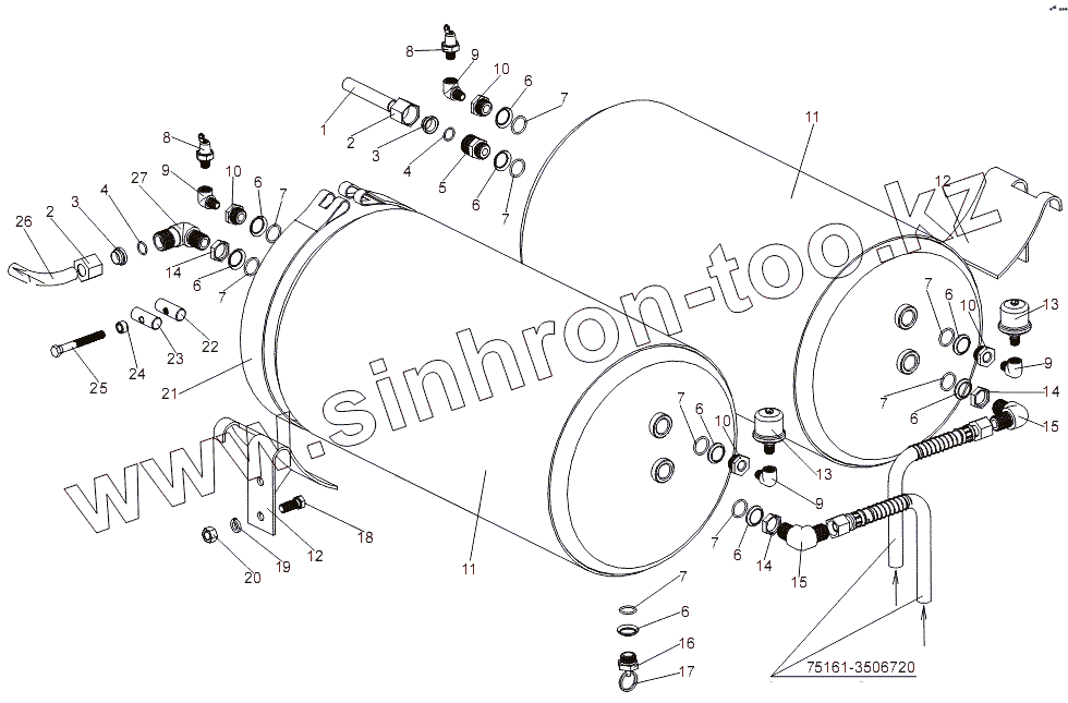 Каталог запасных частей к технике: МЗКТ-7930-200. Установка воздушных баллонов