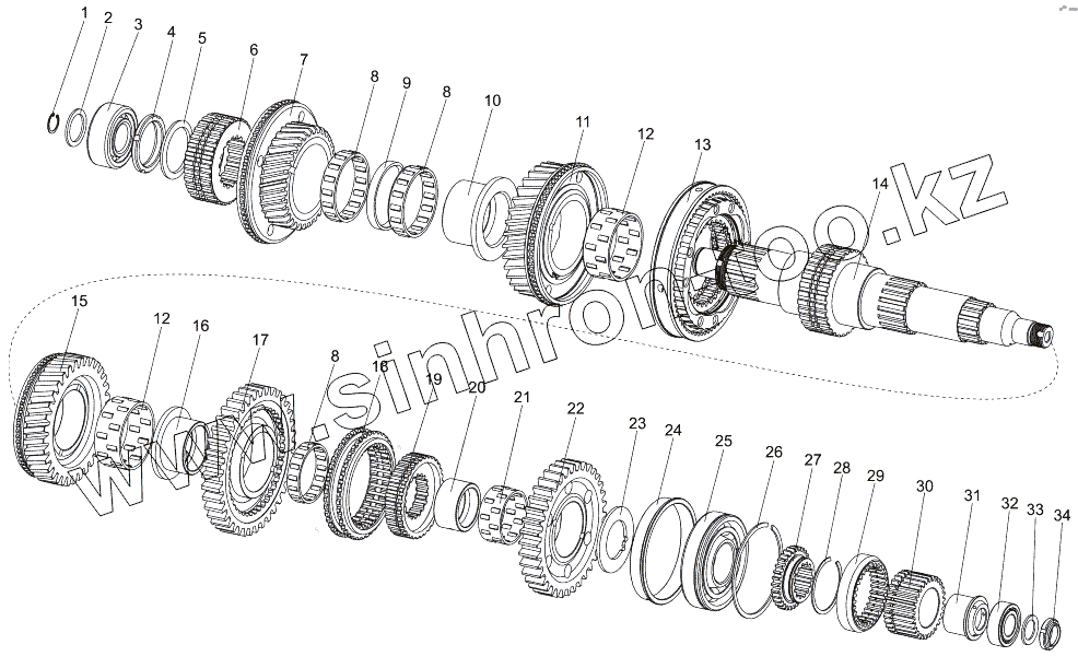 Каталог запасных частей к технике: МЗКТ-7930-200. Вал вторичный коробки передач