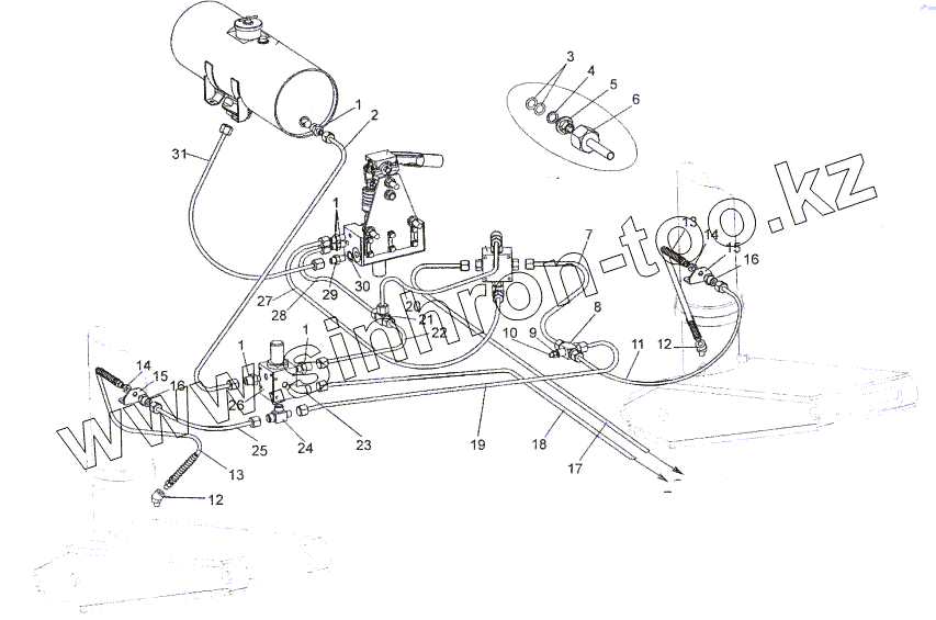 Каталог запасных частей к технике: МЗКТ-93782. Установка трубопроводов гидросистемы опорного устройства