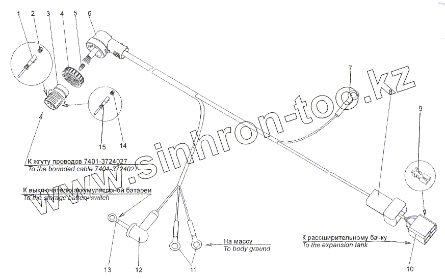 Каталог запасных частей к технике: МЗКТ-93782. Жгут проводов 692374-3724588-11
