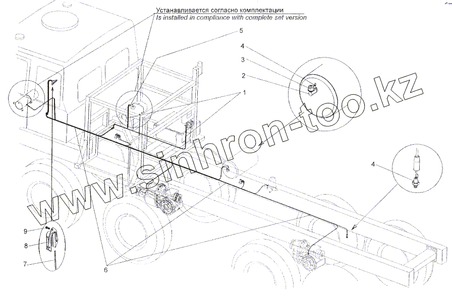 Установка трубопроводов накачки шин правых колес