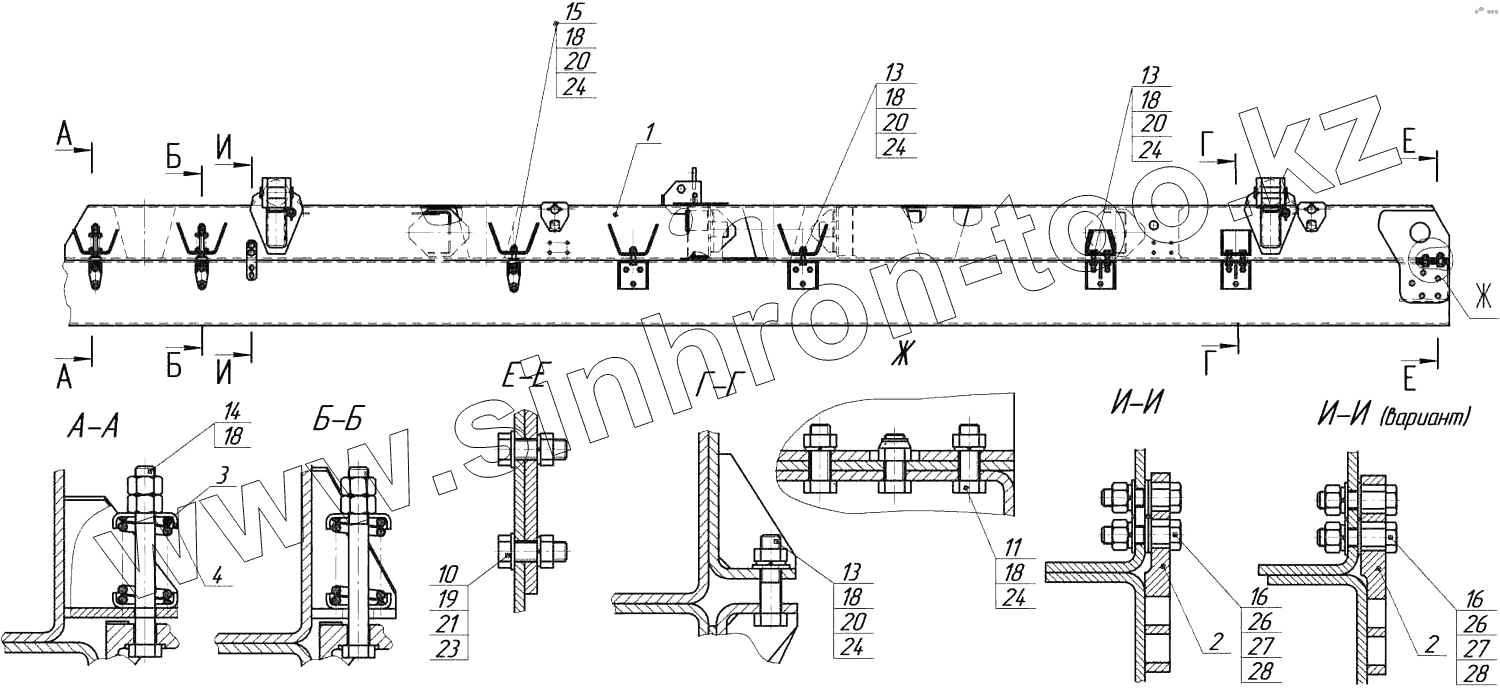Каталог запасных частей к технике: Нефтекамский автозавод НефАЗ-45144-8600001. 45144-8600012 Установка надрамника