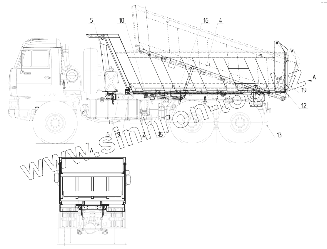 Каталог запасных частей к технике: Нефтекамский автозавод НефАЗ-65222-8600052. 65222-8600052 Самосвальная установка