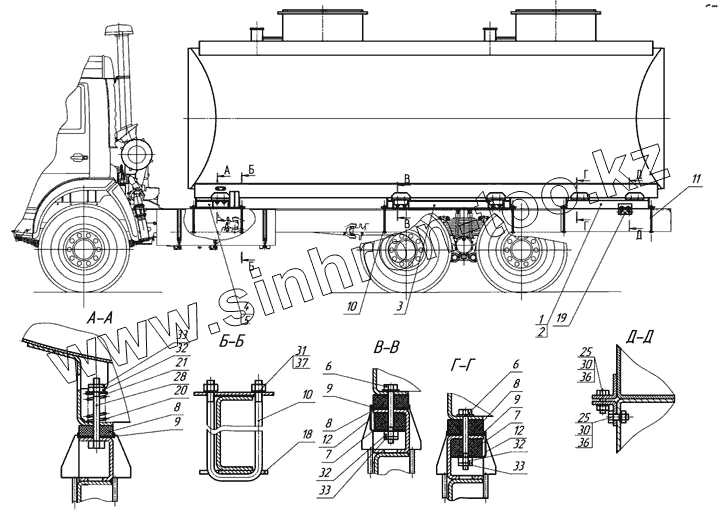 Каталог запасных частей к технике: Нефтекамский автозавод НефАЗ-6606. 66052-02-8516000 Установка цистерны