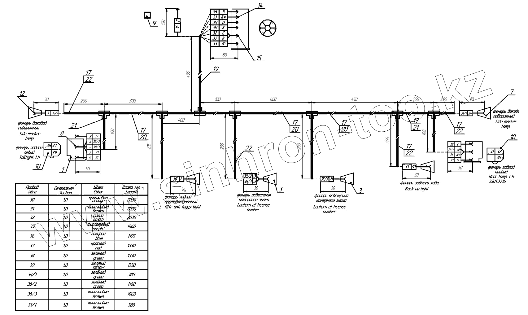Каталог запасных частей к технике: Нефтекамский автозавод НефАЗ-6606. 66052-3724030-17 Жгут задних фонарей