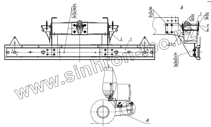 Каталог запасных частей к технике: Нефтекамский автозавод НефАЗ-6606. 66061-2804010 Установка заднего буфера
