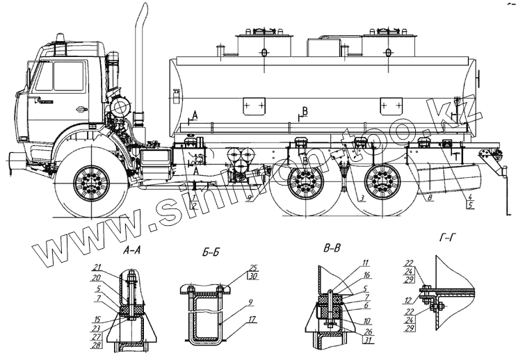 Каталог запасных частей к технике: Нефтекамский автозавод НефАЗ-6606. 66062-8516000 Установка цистерны