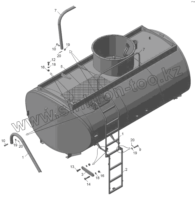 Каталог запасных частей к технике: Нефтекамский автозавод НефАЗ-6606. Э66061-8210030 Установка лестницы, поручня