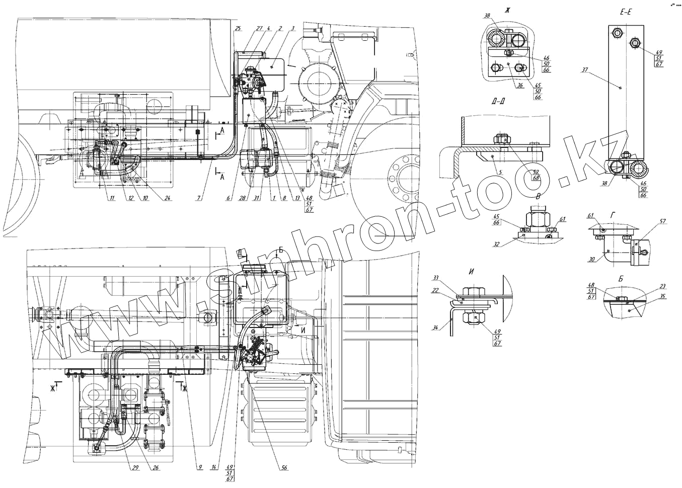Каталог запасных частей к технике: Нефтекамский автозавод НефАЗ-6606. Установка системы гидрооборудования привода насоса