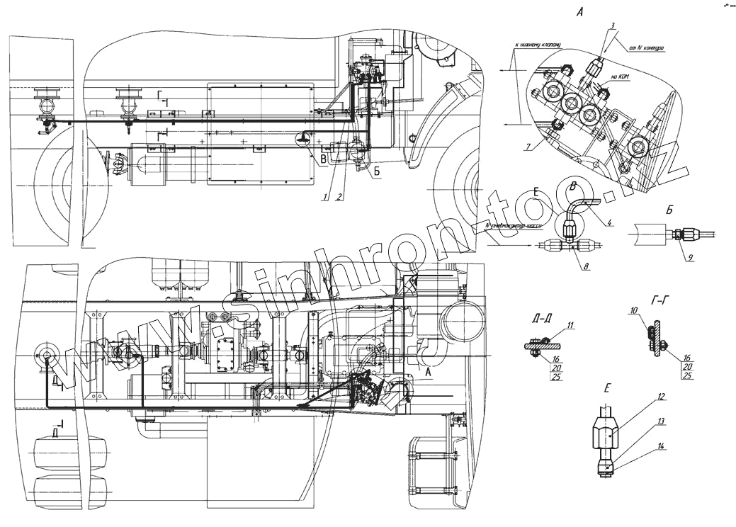 Каталог запасных частей к технике: Нефтекамский автозавод НефАЗ-6606. Установка системы пневмооборудования привода насоса