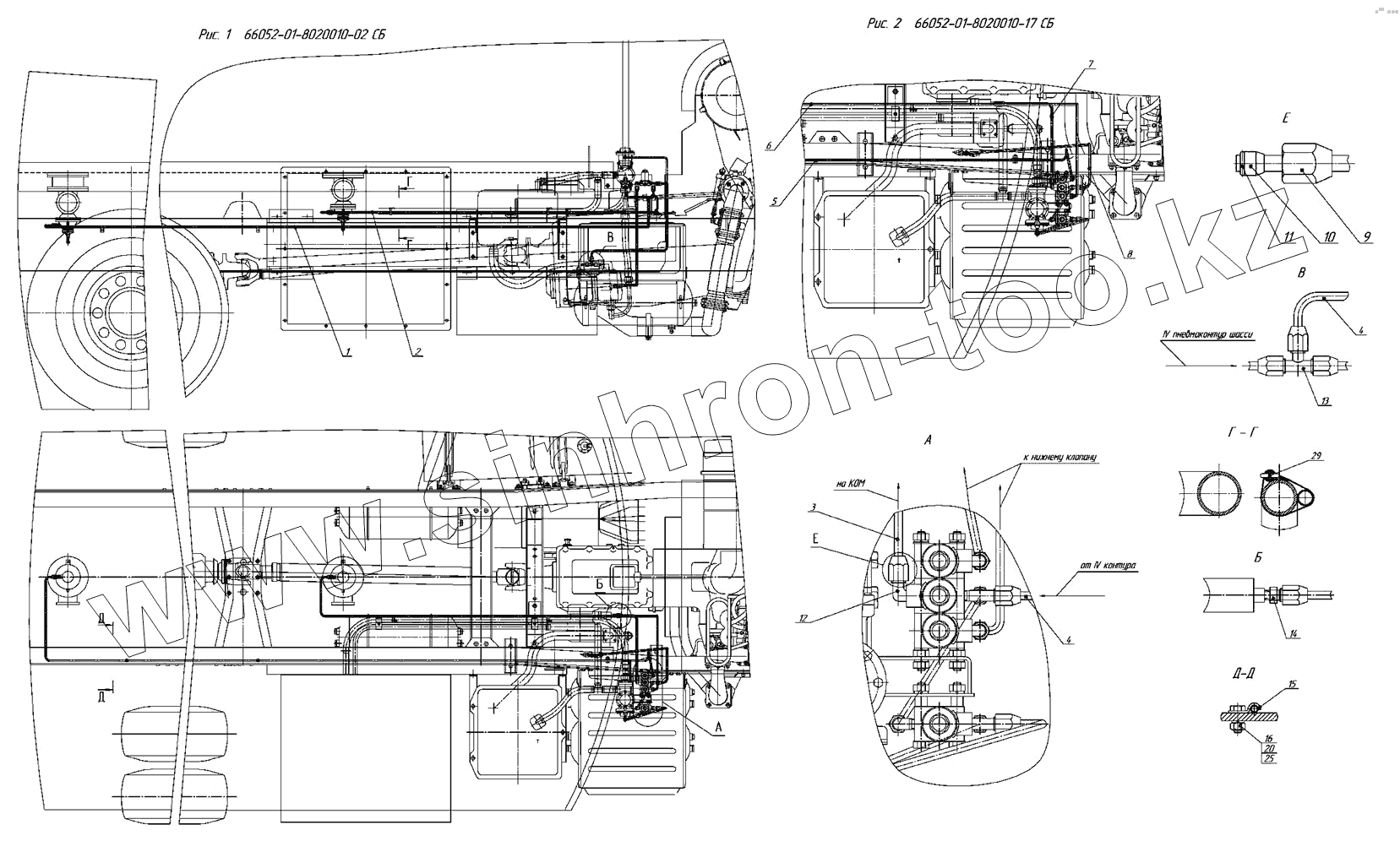 Каталог запасных частей к технике: Нефтекамский автозавод НефАЗ-6606. Установка системы пневмооборудования привода насоса
