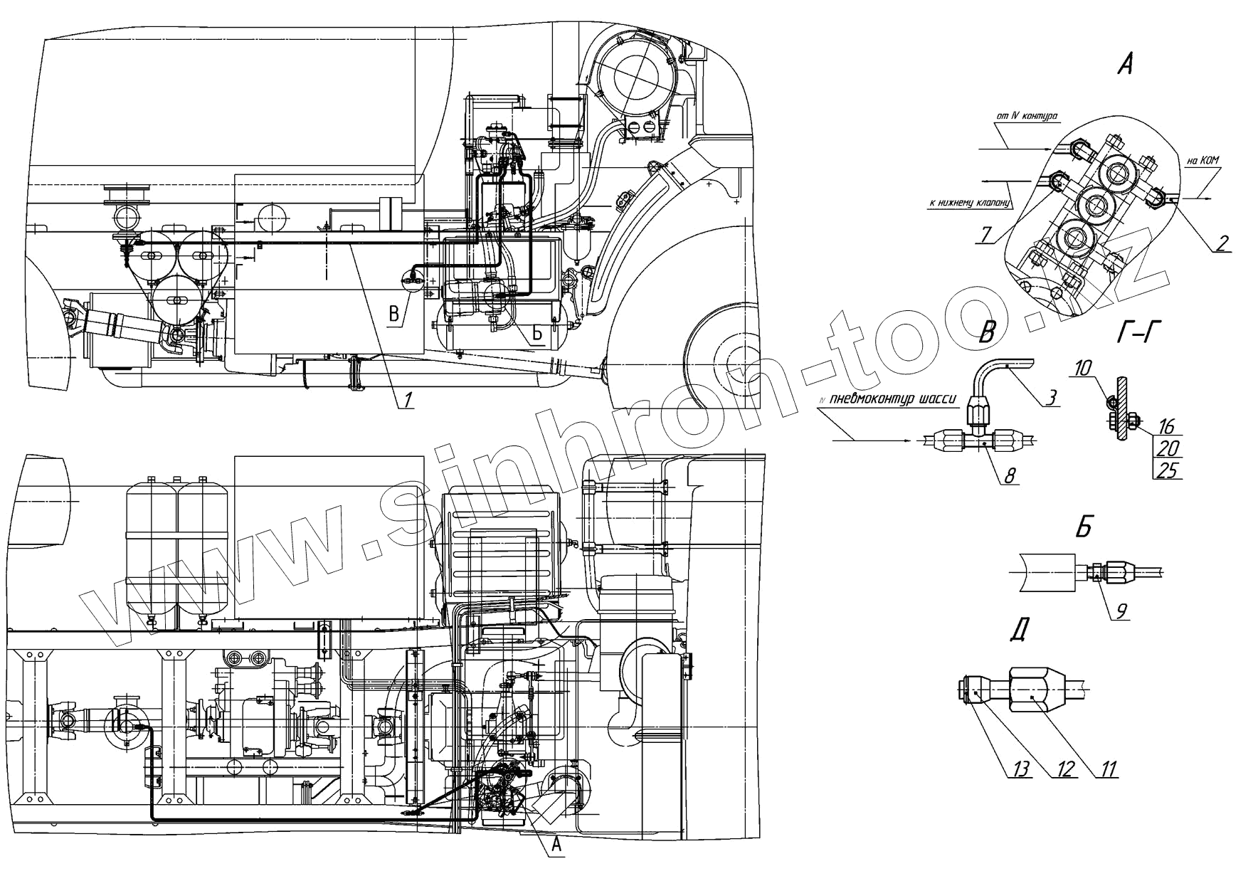 Каталог запасных частей к технике: Нефтекамский автозавод НефАЗ-6606. Установка системы пневмооборудования привода насоса