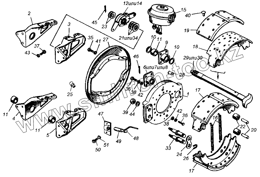 Каталог запасных частей к технике: Нефтекамский автозавод НефАЗ-8332. Тормоза рабочие передней оси