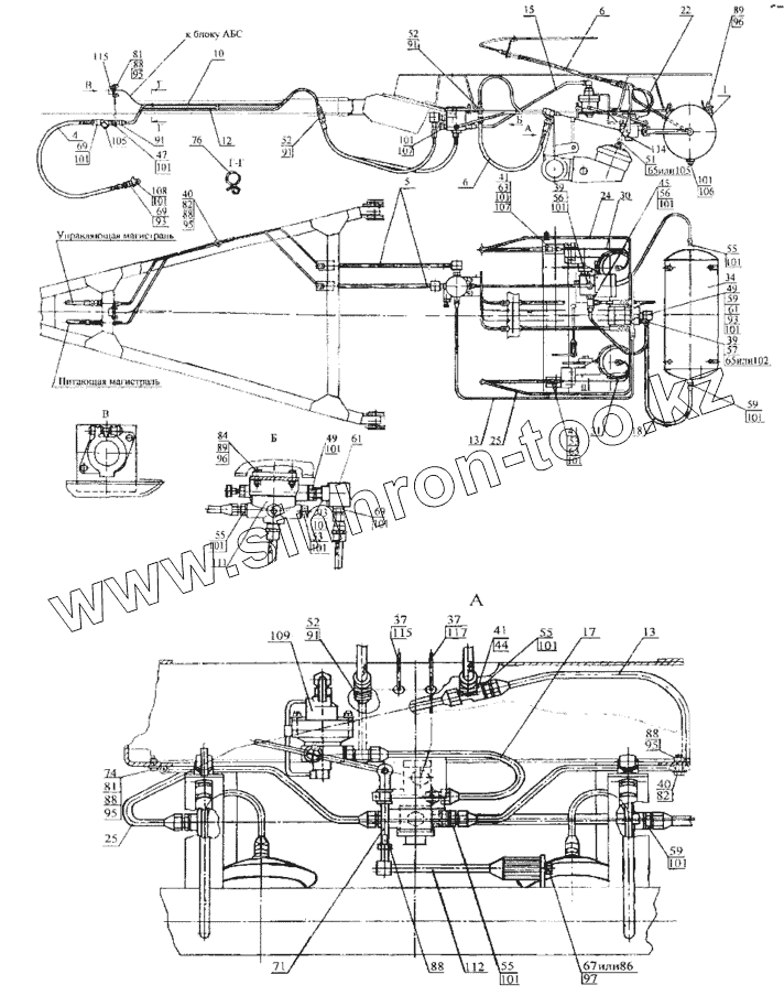 Каталог запасных частей к технике: Нефтекамский автозавод НефАЗ-8332. Установка пневматических тормозов