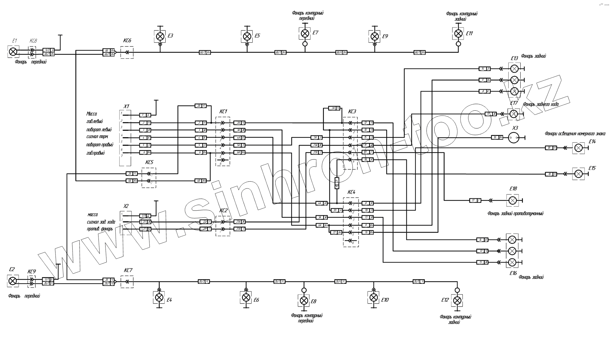 Каталог запасных частей к технике: Нефтекамский автозавод НефАЗ-8332 (2009). Схема электрическая соединений 8332-3700010ЭЧ