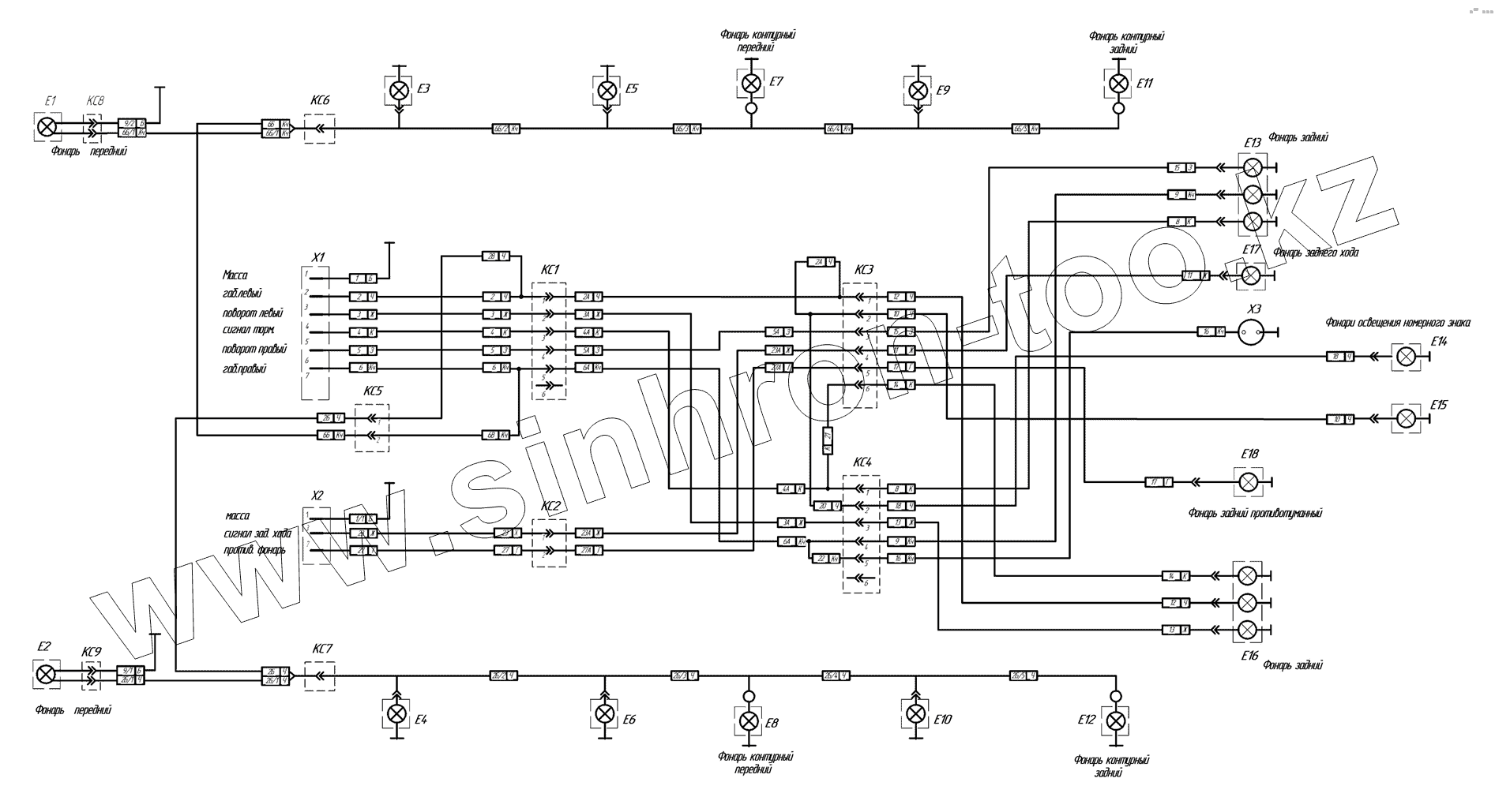 | Е1,Е2 | Е1,Е2 | Фонарь передний 16.3712 ГОСТ 6964-72 | |