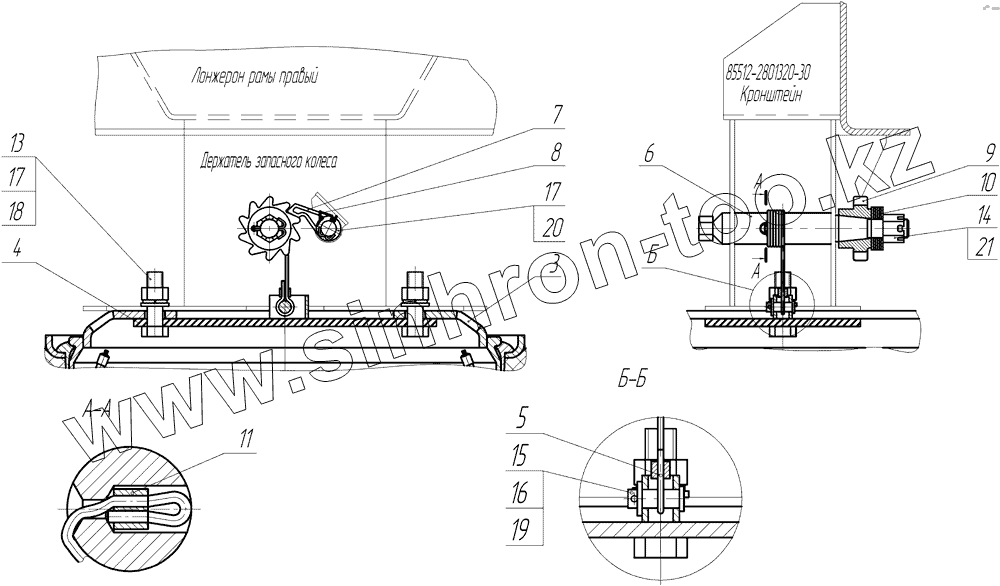 Каталог запасных частей к технике: Нефтекамский автозавод НефАЗ-8332 (2010). Установка запасного колеса 8560-3105001