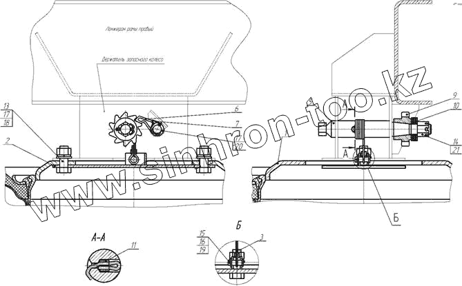 Каталог запасных частей к технике: Нефтекамский автозавод НефАЗ-8332 (двускатный). 8560-3105001 Установка запасного колеса