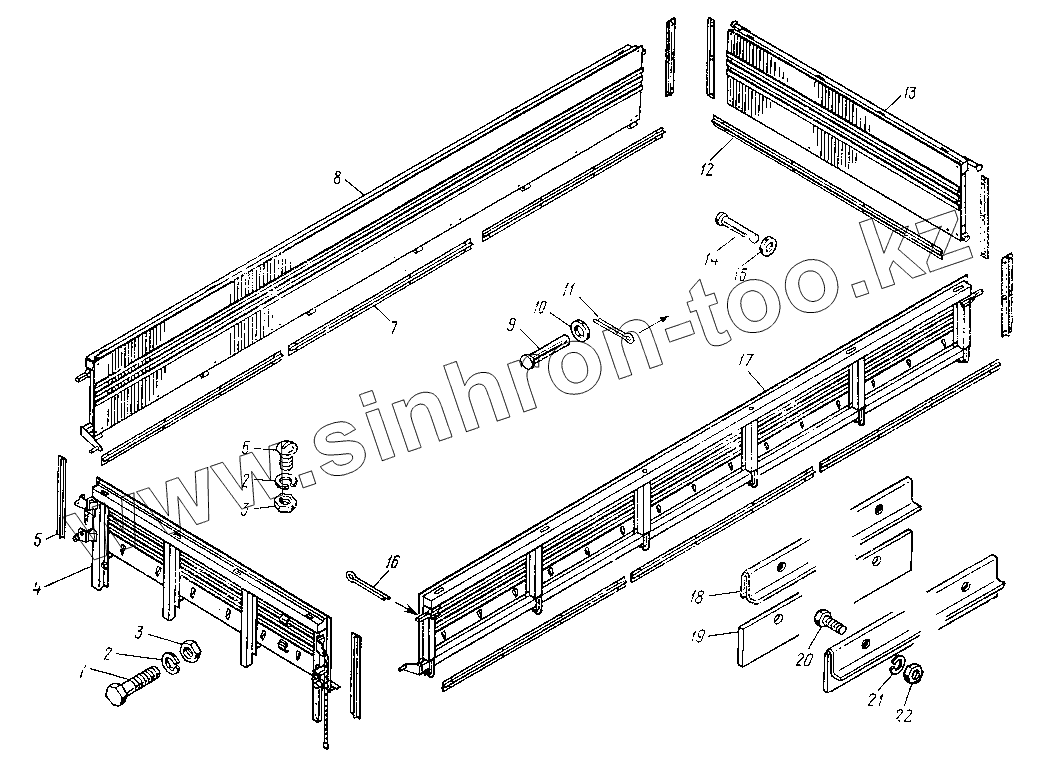 Каталог запасных частей к технике: Нефтекамский автозавод НефАЗ-8527. Основание борта платформы