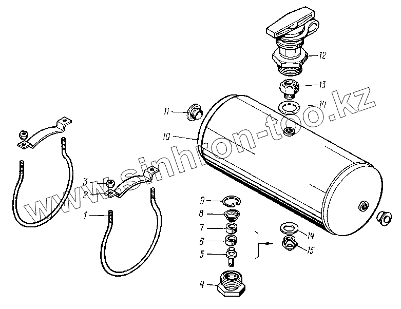 Каталог запасных частей к технике: Нефтекамский автозавод НефАЗ-8527. Ресивер пневмотормозов