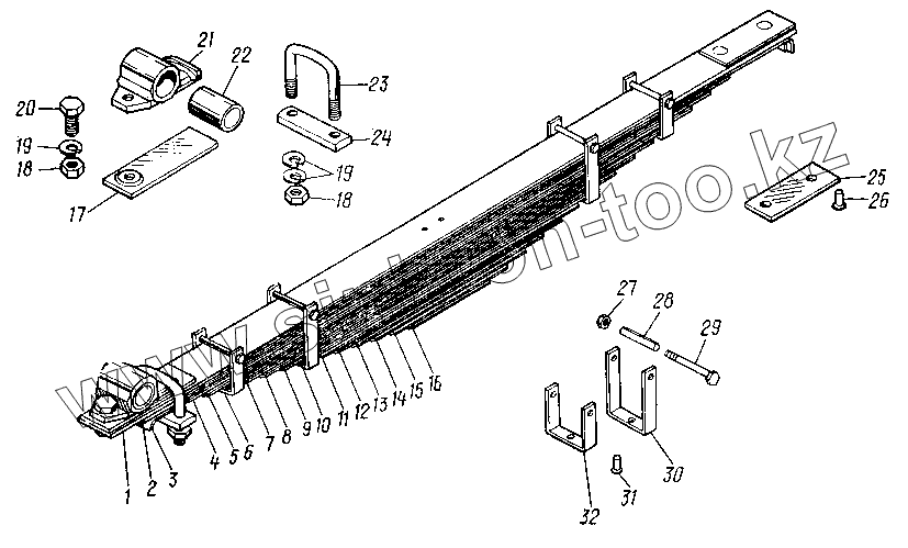 Каталог запасных частей к технике: Нефтекамский автозавод НефАЗ-8527. Рессора