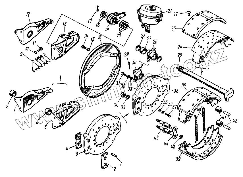 Каталог запасных частей к технике: Нефтекамский автозавод НефАЗ-8527. Тормоза рабочие передней оси