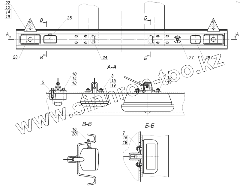 Каталог запасных частей к технике: Нефтекамский автозавод НефАЗ-8560. 8560-3716010 Установка задних фонарей