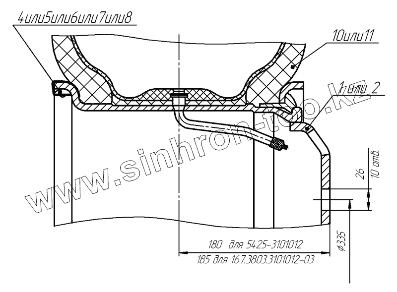 Каталог запасных частей к технике: Нефтекамский автозавод НефАЗ-8560. 9509-3101011 Колесо с шиной