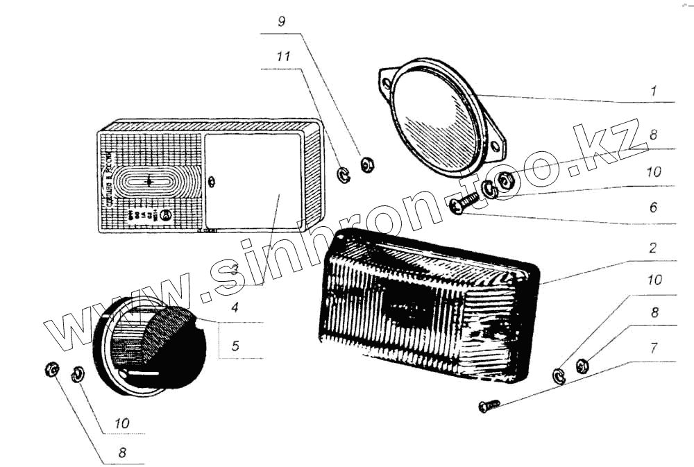 Каталог запасных частей к технике: Нефтекамский автозавод НефАЗ-8560. Фонари и световозвращатели