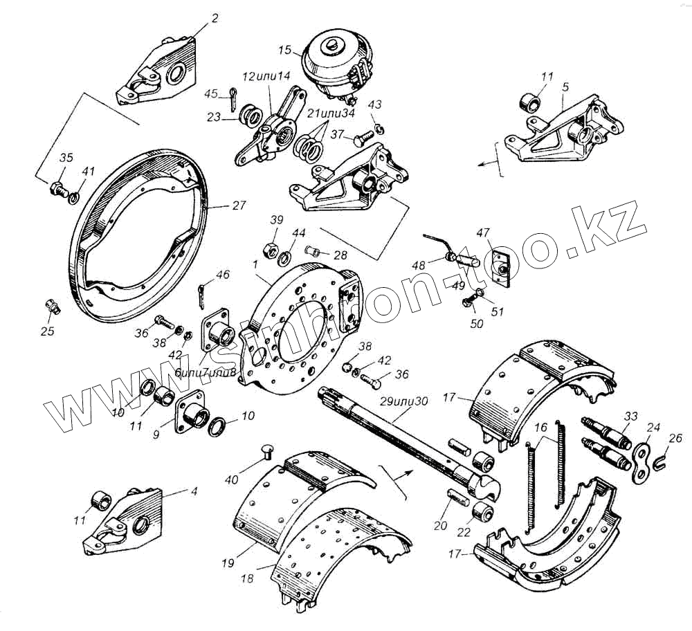 Каталог запасных частей к технике: Нефтекамский автозавод НефАЗ-8560. Тормоза рабочие задней оси