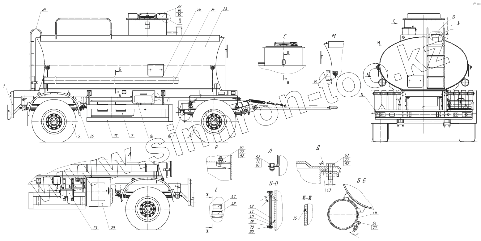 Каталог запасных частей к технике: Нефтекамский автозавод НефАЗ-8602. 8602-0000010-03 Прицеп-цистерна