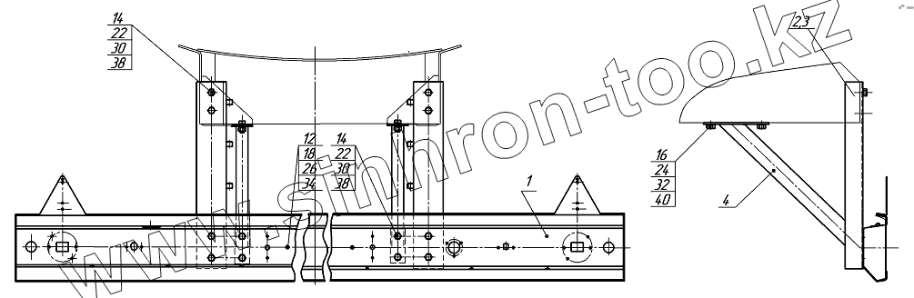 Каталог запасных частей к технике: Нефтекамский автозавод НефАЗ-8602. 8602-2804010 Установка заднего буфера