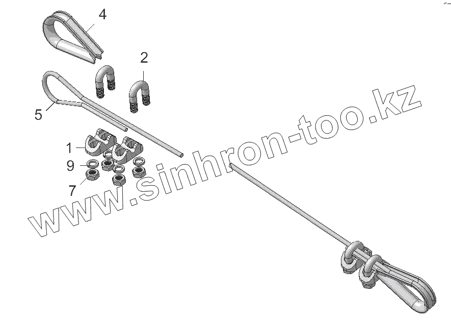 Каталог запасных частей к технике: Нефтекамский автозавод НефАЗ-8602. 8602-3508181 Трос в сборе