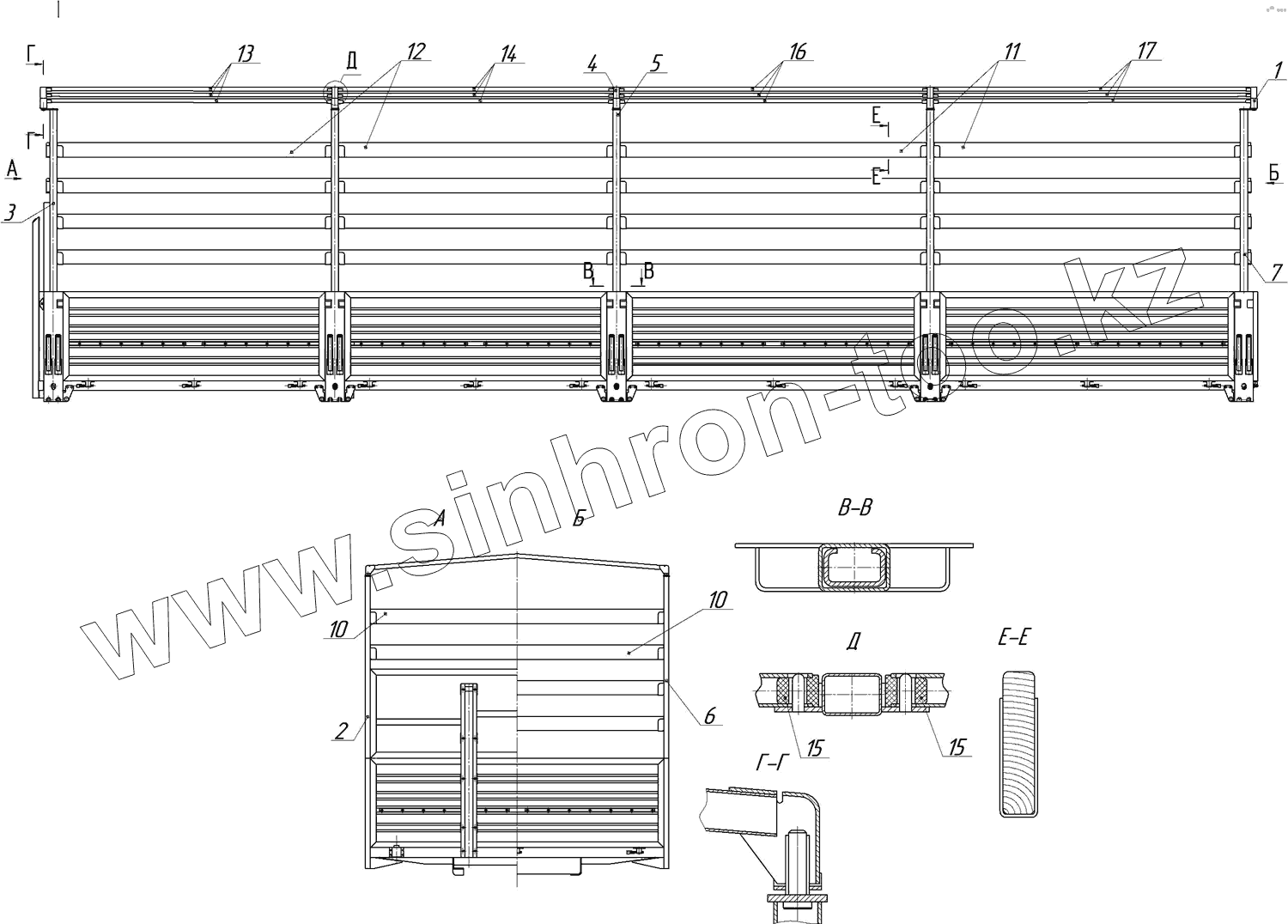 Каталог запасных частей к технике: Нефтекамский автозавод НефАЗ-9334-20. 9334-8508008-02 Каркас тента