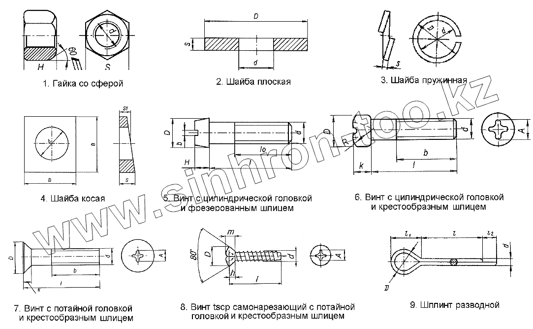 Каталог запасных частей к технике: Нефтекамский автозавод НефАЗ-9334. Гайки, шайбы, винты, шплинты