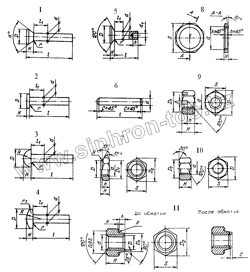 | 4 | Заклепка с полукруглой низкой головкой | Заклепка с полукруглой низкой головкой (d=4, D=8, H=2,0, r=0,4, l=10, l1=3, R=6,5, r=2,0) | |