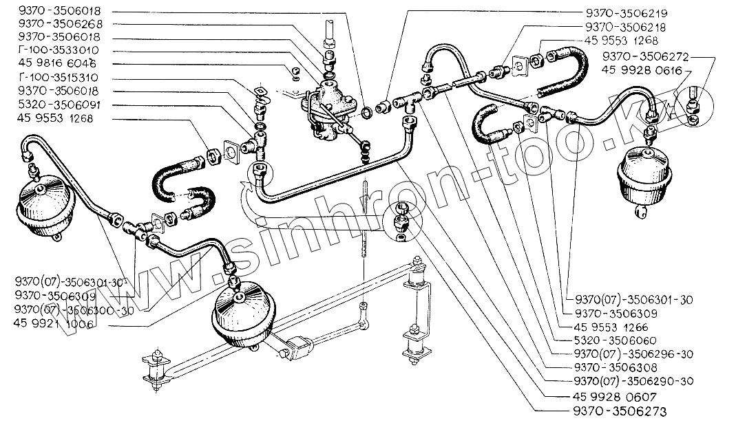 Каталог запасных частей к технике: Нефтекамский автозавод НефАЗ-937006/07-01. Привод пневматический тормозов