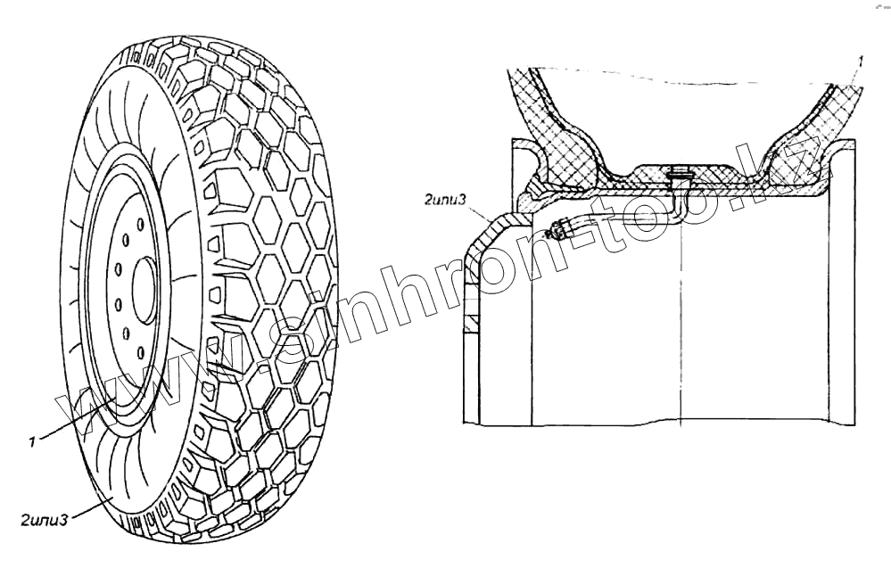 Каталог запасных частей к технике: Нефтекамский автозавод НефАЗ-9509. Колесо с шиной 9509-3101011
