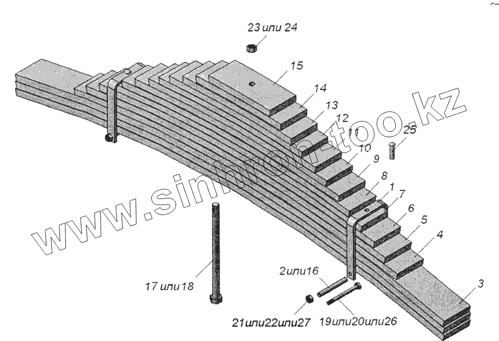 Каталог запасных частей к технике: Нефтекамский автозавод НефАЗ-9509. Рессора 6520-2912012-10