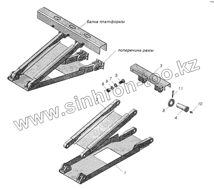 Каталог запасных частей к технике: Нефтекамский автозавод НефАЗ-9509. Установка стабилизатора платформы