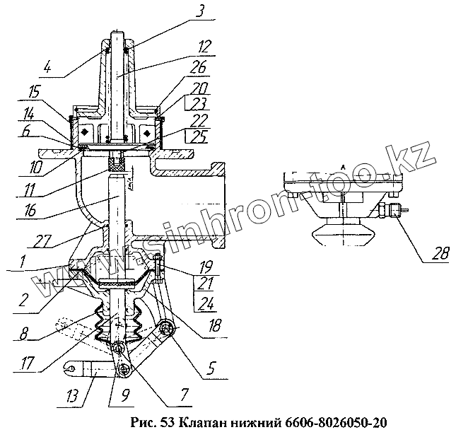 Каталог запасных частей к технике: Нефтекамский автозавод НефАЗ-96741. Клапан нижний 6606-8026050-20
