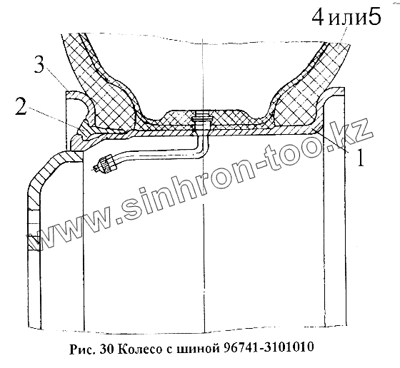Каталог запасных частей к технике: Нефтекамский автозавод НефАЗ-96741. Колесо с шиной 96741-3101010