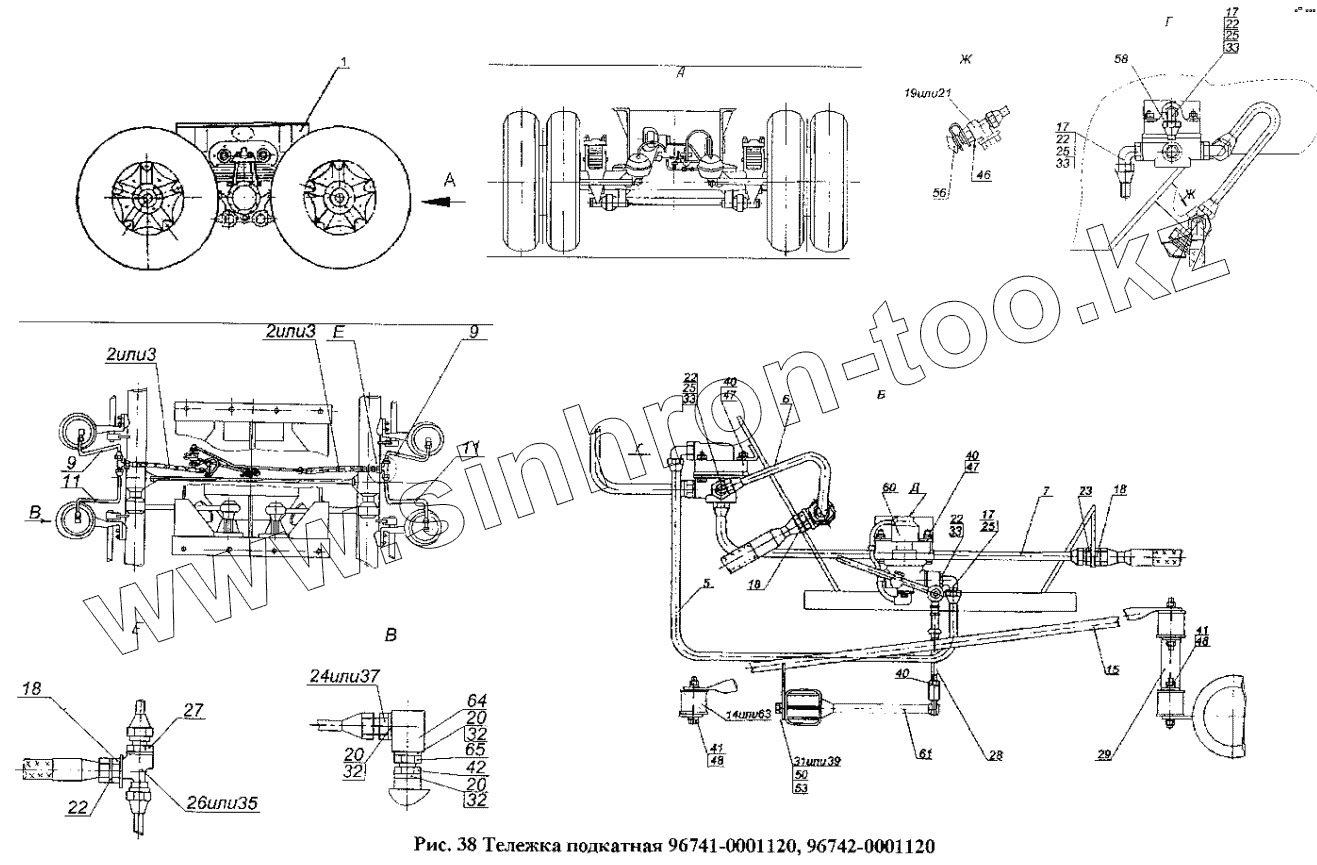 Каталог запасных частей к технике: Нефтекамский автозавод НефАЗ-96741. Тележка подкатная 96741-0001120, 96742-0001120