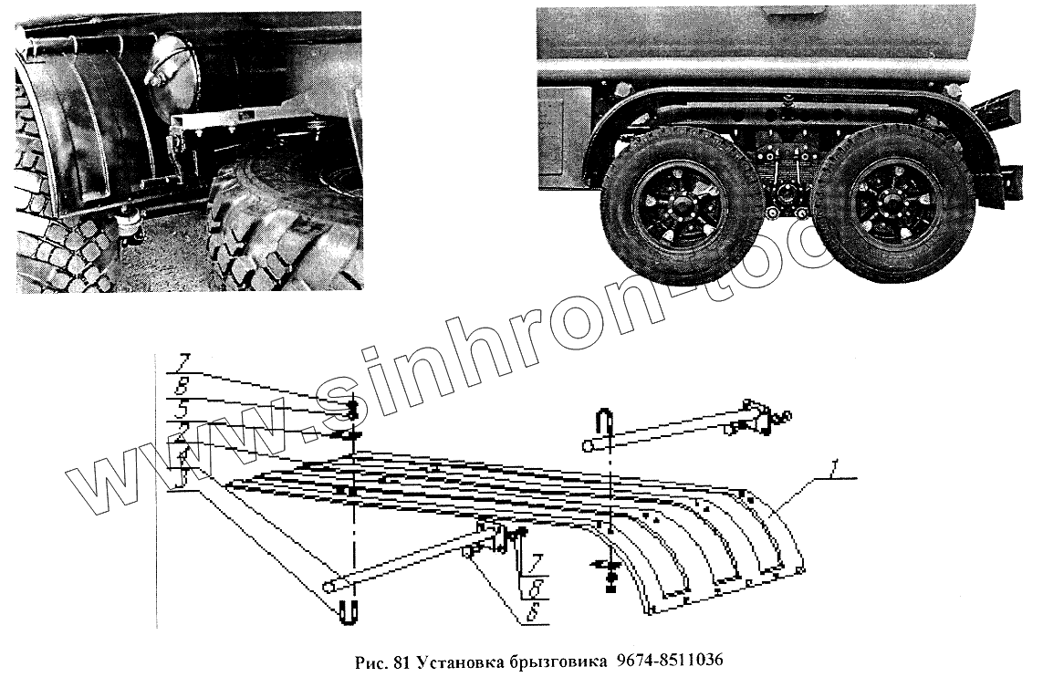 Каталог запасных частей к технике: Нефтекамский автозавод НефАЗ-96741. Установка брызговика 9674-8511036