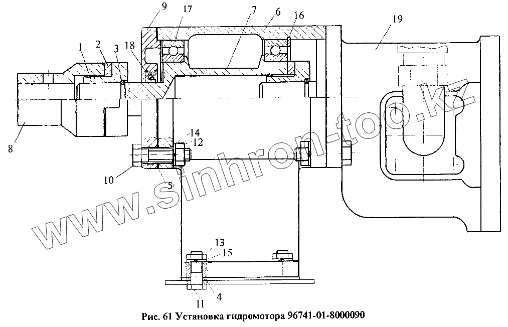 Каталог запасных частей к технике: Нефтекамский автозавод НефАЗ-96741. Установка гидромотора 96741-01-8000090